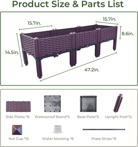 Plastic Raised Garden Bed, Set Planter Grow Boxes for Indoor & Outdoor Vegetable Fruit Flower Herb Growing Box