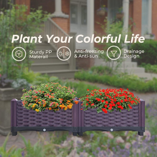 Plastic Raised Garden Bed, 2Pcs Planter Grow Boxes 14.5" H with Legs for Indoor & Outdoor Vegetable Fruit Flower Herb Growing Box