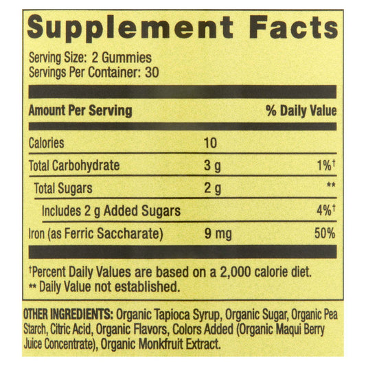Spring Valley Iron Organic Vegetarian Gummies; 9 mg; 60 Count