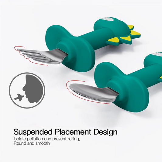 AWINNER Divided Toddler Baby Plates, Spoon and Fork Combo, BPA Free Safe Utensil for Kids and Toddler (Green)