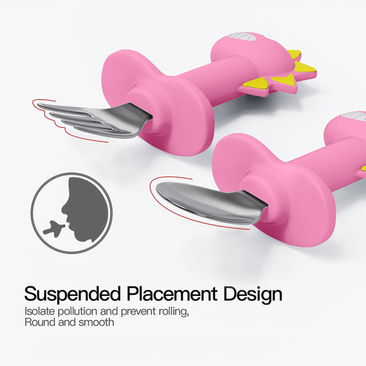 AWINNER Divided Toddler Baby Plates, Spoon and Fork Combo, BPA Free Safe Utensil for Kids and Toddler (Pink)