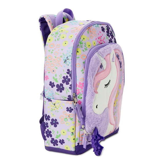 Wonder Nation Girls 17" Laptop Backpack Fuzzy Flower Magic Unicorn Purple