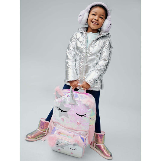 Schoolyard Vibes Unicorn Girls 17" Sequin Stationary Kids Backpack Set, Blue
