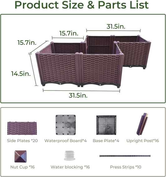 Plastic Raised Garden Bed, Set Planter Grow Boxes for Indoor & Outdoor Vegetable Fruit Flower Herb Growing Box