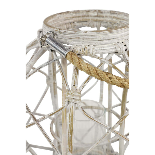 Decmode Large Round Woven Rattan White Lantern with Burlap Jute Rope Handle and Glass Insert, 15' x 15'