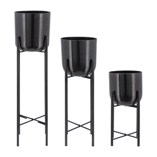 S/3 METAL PLANTERS ON STAND 40/30/20"H, GUNMETAL