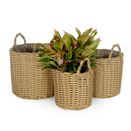 Set of 3 Multi-purposes Basket with handler - Hand Woven Wicker - Natural