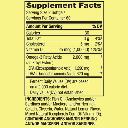 Spring Valley Maximum Care Omega-3 from Fish Oil Eye Brain Bone & Heart Health Dietary Supplement Softgels, 2000 mg, 120 Count