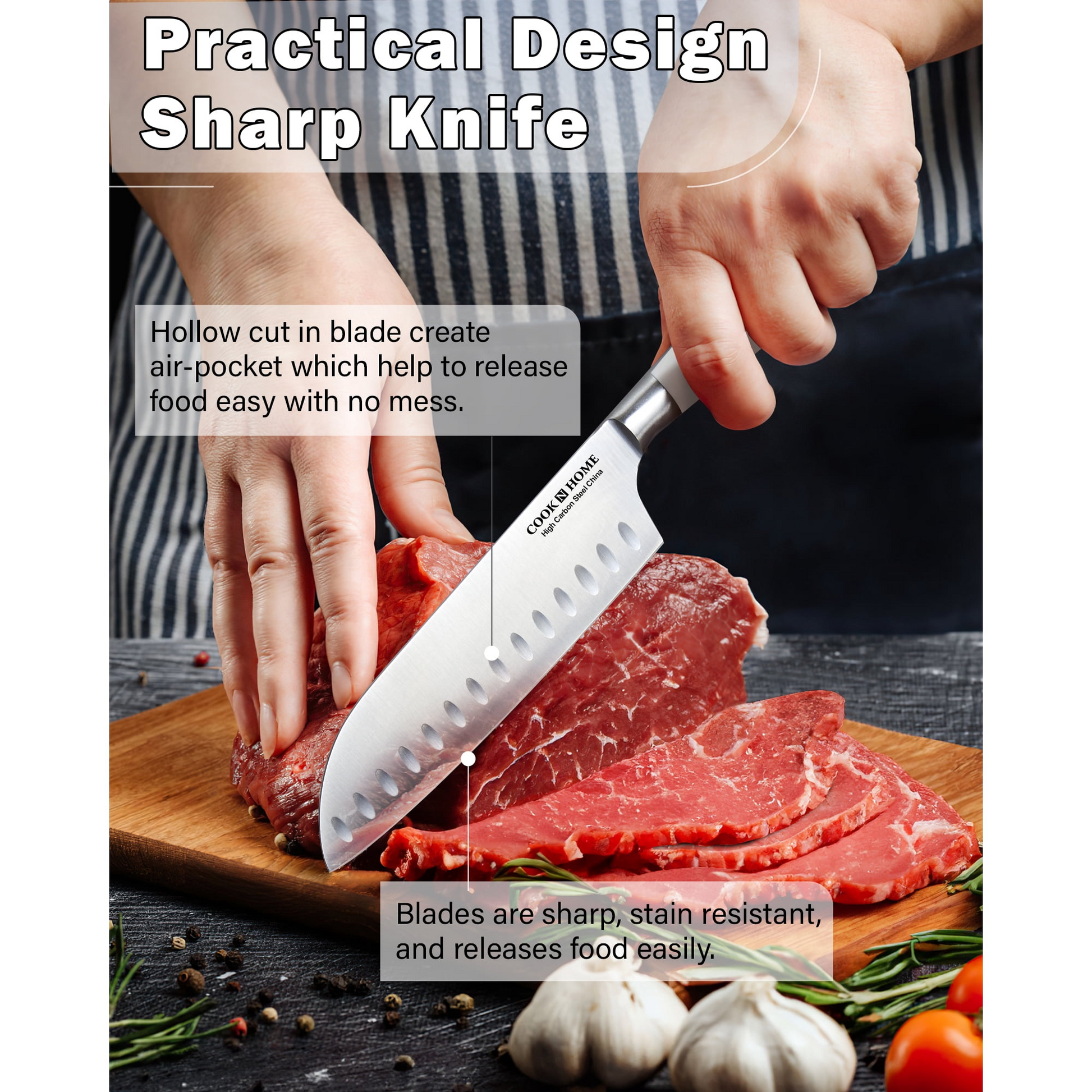 [superior performance]knife blade are made of superior high carbon steel for sharpness and balance. Enjoy easy cutting with minimal effort with the light weight.