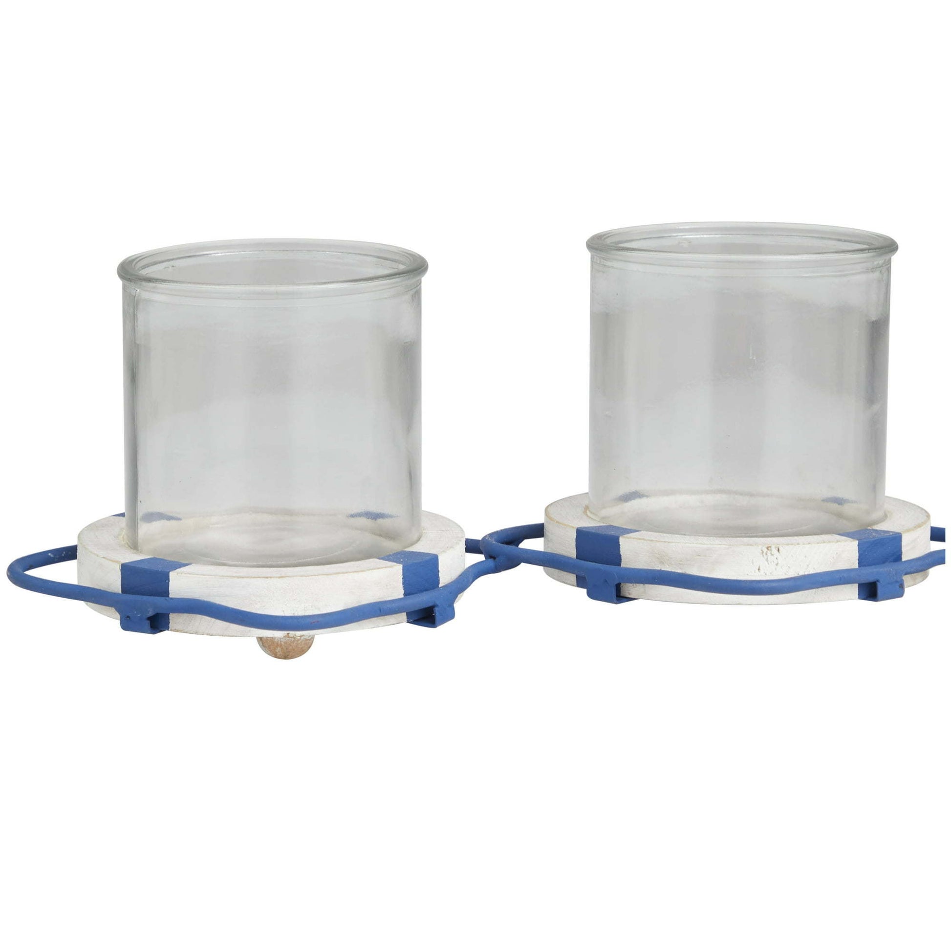 DecMode 3 Candle Blue Metal Buoy Distressed 3 Linked Candle Holder with White Wood Accents