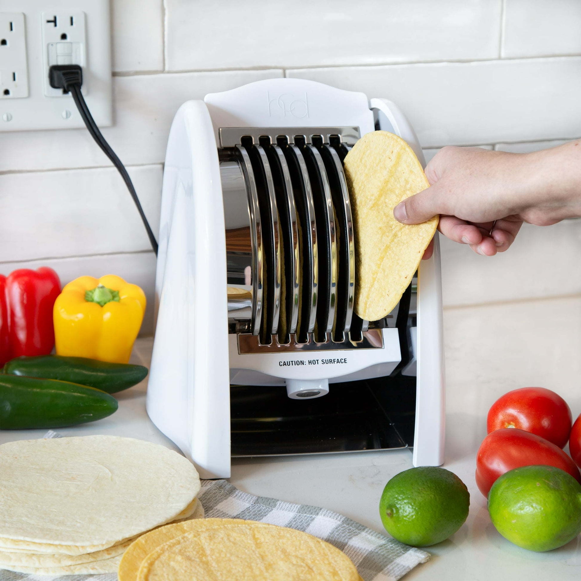 Burning a tortilla on a stovetop is just part of the taco experience, right? Delicious corn or flour tortillas capture an even tastier texture and flavor when lightly toasted over the open flame of a gas stovetop. Alas, that fire-fueled method—like the also popular pan toasting practice—has its risks. Namely, you venture losing track of time and burning the tortilla. Taco night: ruined. If this sad tale rings any bells, consider putting burnt tortillas in the past with this electric tortilla toaster. It evenly toasts up to six tortillas at once, and a handy dial warms them up just as much (or as little) as you like them.