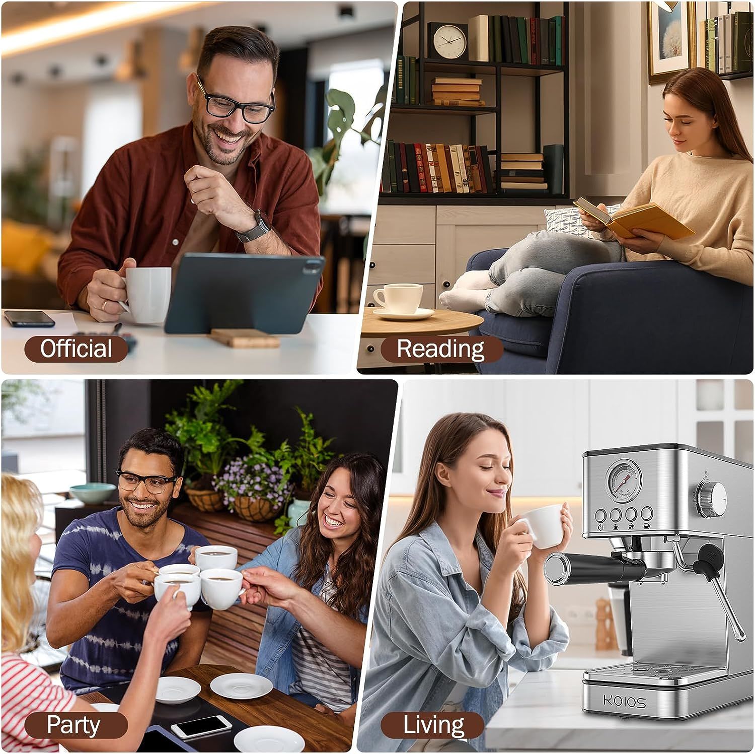KOIOS Espresso Machines, 20 Bar Semi-Automatic Espresso Maker with Foaming Steam Wand, 1200W Stainless Steel Espresso Coffee Maker for home, 58oz removable Water Tank, PID Control System