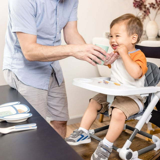 Your little one has outgrown their high chair and you are on the search for the perfect dining solution to give your child a seat at the table. With quick and easy set up, a dishwasher safe tray, and a soft washable foam seat pad, the Monbebe Portable Foldable Booster, Grey is the solution you have been waiting for to make meal time easy.